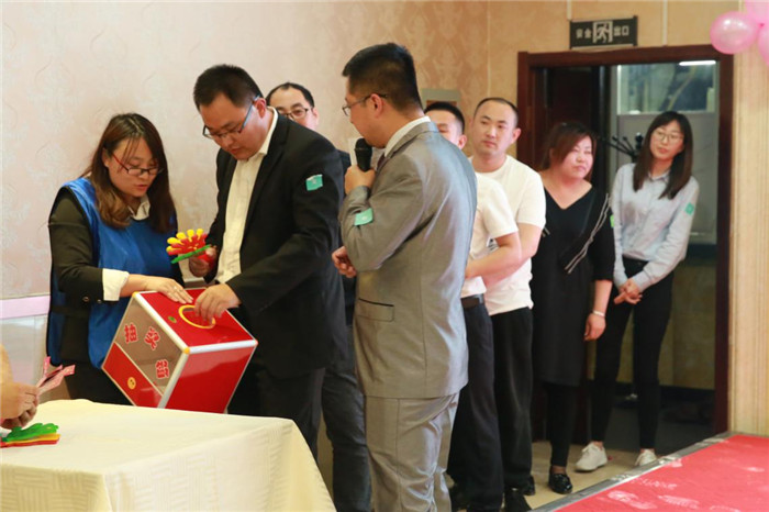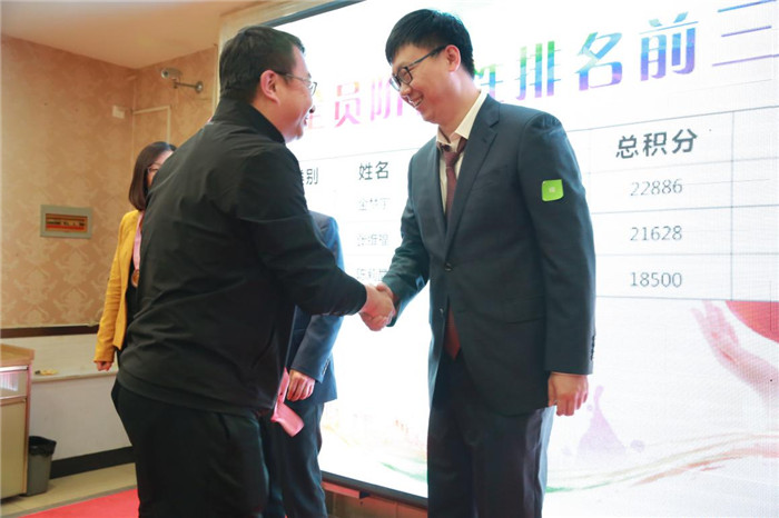 隨后,由人力資源部部長(zhǎng)楊萍公布階段性積分的排名,由蘆永軍總經(jīng)理為積分排名三甲的員工頒發(fā)獎(jiǎng)牌以及按照各部門積分排名情況為員工頒發(fā)獎(jiǎng)品。