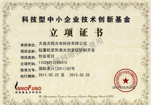 技術(shù)創(chuàng)新基金立項(xiàng)證書
